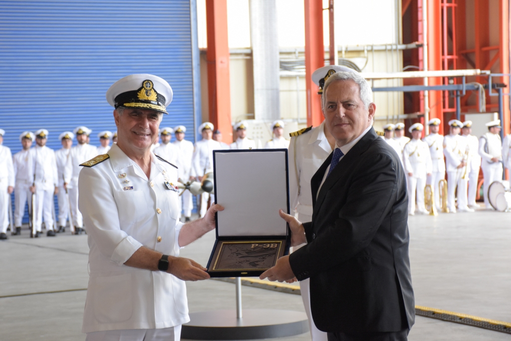 Αποτελεί ιδιαίτερη χαρά για μένα το γεγονός ότι παρίσταμαι στην τελετή παράδοσης στο Πολεμικό Ναυτικό του Αεροσκάφους Ναυτικής Συνεργασίας P-3B Ενδιάμεσης Λύσης. Το πρώτο βήμα στο σημαντικό πρόγραμμα εκσυγχρονισμού των εν λόγω αεροσκαφών, P-3B.