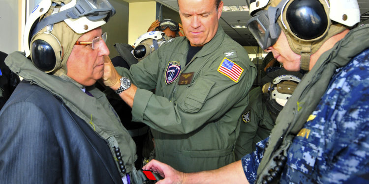Στην φωτό ( του Paul Farley του Αμερικανικού Ναυτικού)  ο υπουργός Άμυνας της Βουλγαρίας, αριστερά, με την κατάλληλη εξάρτυση για την πτήση που την ελέγχει ο πλοίαρχος James Gibson, διοικητής της Αμερικανικής Βάσης Υποστήριξης Ναυτικού της Σούδας και ο ναύαρχος Bruce W. Clingan.
