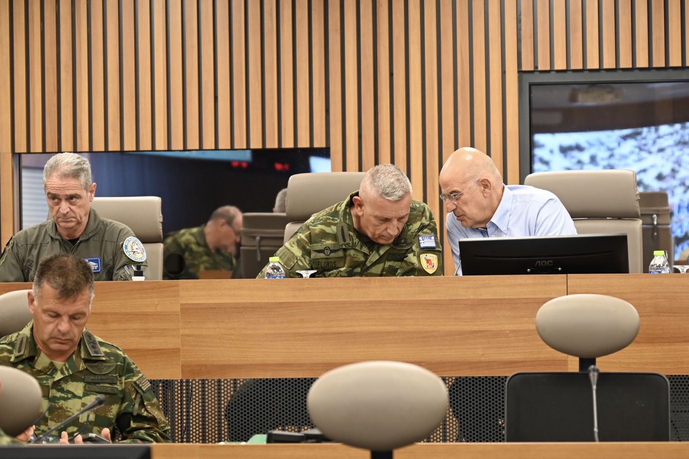 Νωρίτερα, ο ΥΕΘΑ είχε επισκεφθεί την έδρα της 1ης Στρατιάς στη Λάρισα, όπου επιθεώρησε με τον Αρχηγό ΓΕΕΘΑ, το στρατόπεδο Μπουγά στη Λάρισα, στο οποίο βρίσκεται ένας από τους σταθμούς απολύμανσης προσωπικού και οχημάτων του Ειδικού Διακλαδικού Λόχου Αντιμετώπισης Πυρηνικής-Βιολογικής-Χημικής Άμυνας (ΕΔΛΟ/ΠΒΧ) του ΓΕΕΘΑ.