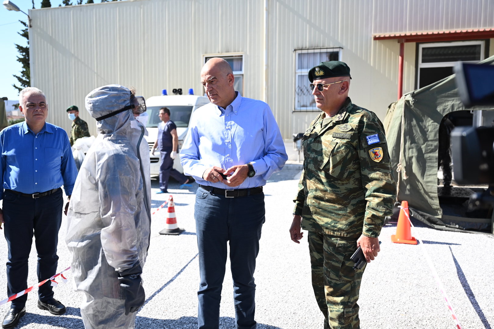 «Επισκέφθηκα επίσης τον σταθμό απολύμανσης οχημάτων και προσωπικού που λειτουργεί εντός του στρατοπέδου Γεωργούλα, μετά την αποστολή στη Θεσσαλία του Ειδικού Διακλαδικού Λόχου Αντιμετώπισης Πυρηνικής – Βιολογικής – Χημικής Άμυνας (ΕΔΛΟ/ΠΒΧ)» προσθέτει στην ανάρτησή του ο κ. Δένδιας.