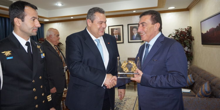 Ο Υπουργός Εθνικής Άμυνας Πάνος Καμμένος, στο πλαίσιο της επίσημης επίσκεψης που πραγματοποιεί στην Ιορδανία, συναντήθηκε με τον Πρίγκιπα της Ιορδανίας Feisal Bin Al-Hussein, τον Ιορδανό Πρωθυπουργό και Υπουργό Άμυνας Dr. Abdullah Ensour και τον Πρόεδρο της Ιορδανικής Βουλής Atef Tarawneh.