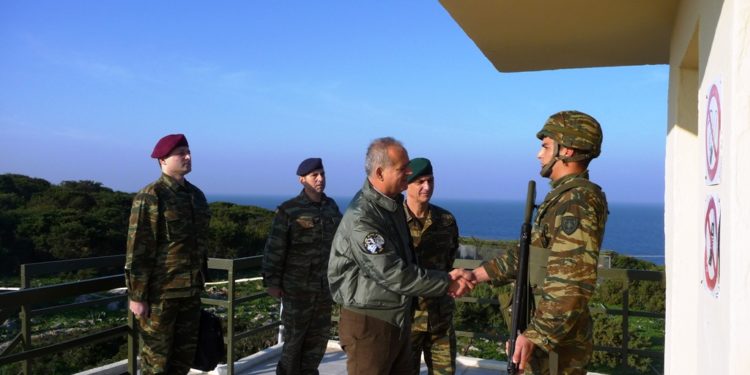 Στα “δύσκολα” πάει πάντα ο ΥΦΕΘΑ Γιάννης Λαμπρόπουλος. Ακόμη και για τα χρόνια πολλά. Ο Καλαματιανός πήγε στο Φαρμακονήσι συνοδευόμενος από τον Αρχηγό του Γενικού Επιτελείου  Στρατού αντιστράτηγο  Χρίστο Μανωλά για να πει χρόνια πολλά και καλά Χριστούγεννα.