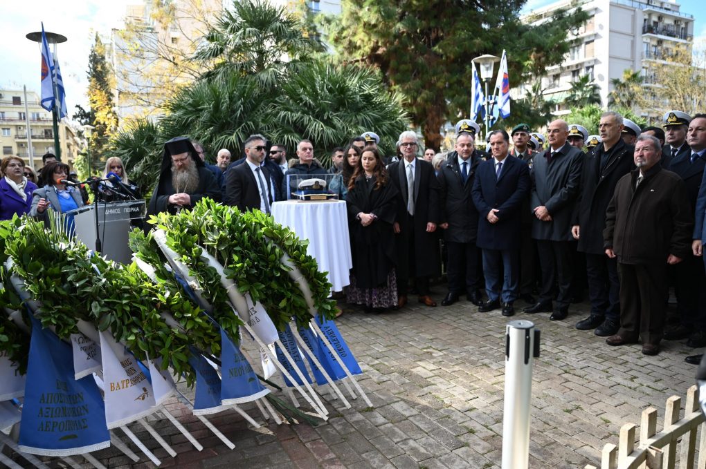 Μετά την επιμνημόσυνη δέηση, στην οποία χοροστάτησε ο Πανοσιολογιότατος Αρχιμανδρίτης κ Δανιήλ, ως εκπρόσωπος του Σεβασμιώτατου Μητροπολίτη Πειραιώς κ. κ Σεραφείμ, ακολούθησε κατάθεση στεφάνων.