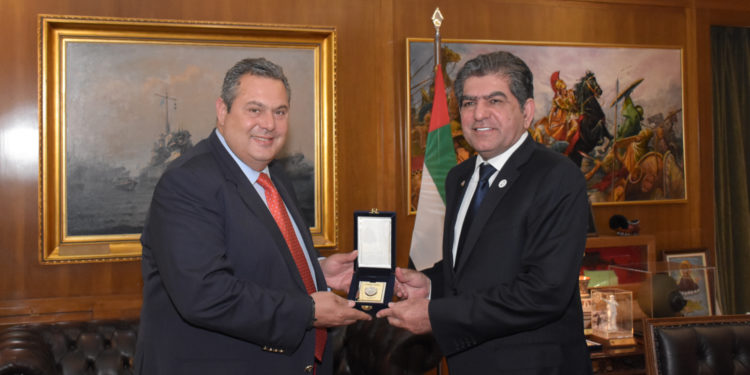 Ο ΥΕΘΑ Πάνος Καμμένος συναντήθηκε με το νέο πρέσβη των Ηνωμένων Αραβικών Εμιράτων Mohamed Meer Abdalla Yousif Alraeesi στο Υπουργείο Εθνικής Άμυνας και συζήτησαν μια σειρά θεμάτων αμοιβαίου ενδιαφέροντος, αλλά και τρόπους με τους οποίους η ήδη υπάρχουσα σχέση αμυντικής συνεργασίας μπορεί να βελτιωθεί περεταίρω στο μέλλον.