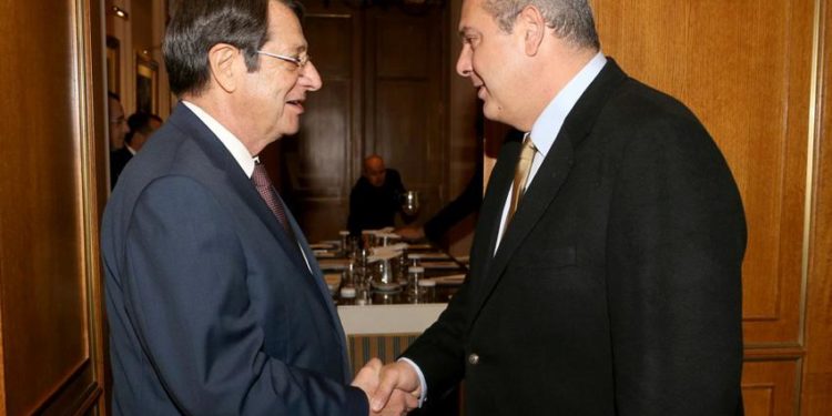 «Ενημερώθηκα από τον Πρόεδρο της Δημοκρατίας, κ. Αναστασιάδη για την πορεία των διαπραγματεύσεων, όλοι στηρίζουμε τις διαπραγματεύσεις και βεβαίως στηρίζουμε την Κυπριακή κυβέρνηση. Είναι αλήθεια ότι υπάρχουν θέματα τα οποία αποτελούν «κόκκινη γραμμή» για τον Ελληνισμό. Το ένα είναι το θέμα των εγγυήσεων και βεβαίως το θέμα της άμεσης αποχώρησης των δυνάμεων κατοχής από την Κύπρο» δήλωσε ο Πρόεδρος των Ανεξάρτητων Ελλήνων και υπουργός Εθνικής ‘Αμυνας Πάνος Καμμένος, μετά τη συνάντησή του με τον Πρόεδρο της Κυπριακής Δημοκρατίας, Νίκο Αναστασιάδη.