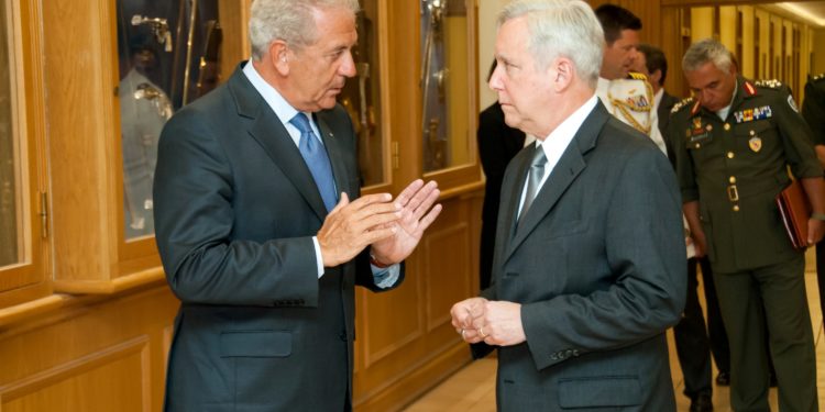 Ο Υπουργός Εθνικής Άμυνας Δημήτρης Αβραμόπουλος δέχθηκε σήμερα στο γραφείο του στο ΥΠΕΘΑ, τον Πρέσβη των Η.Π.Α. στην Ελλάδα David D. Pearce.