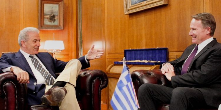 Ο Υπουργός Εθνικής Άμυνας Δημήτρης Αβραμόπουλος δέχθηκε σήμερα στο γραφείο του στο ΥΠΕΘΑ, τον Πρέσβη των Η.Π.Α. στην Ελλάδα Daniel Bennett Smith.
