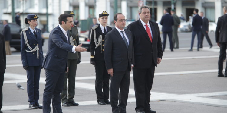 Τα τρία μαχητικά αεροσκάφη της ΠΑ ανέμεναν το Γαλλικό Προεδρικό αεροσκάφος στην είσοδό του στο FIR Αθηνών και το συνόδευσαν μέχρι το αεροδρόμιο.