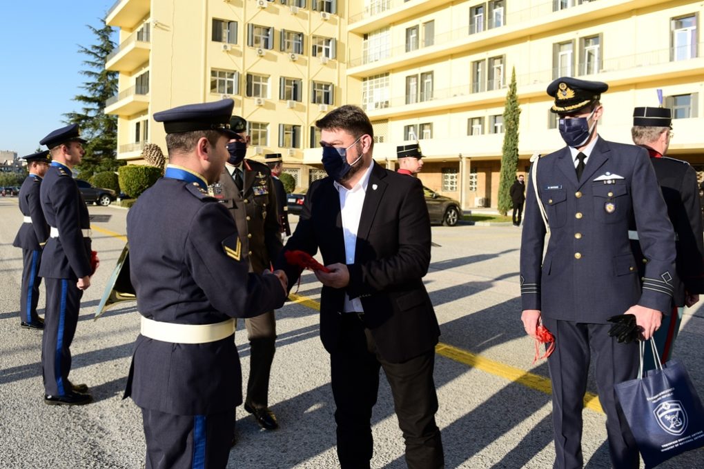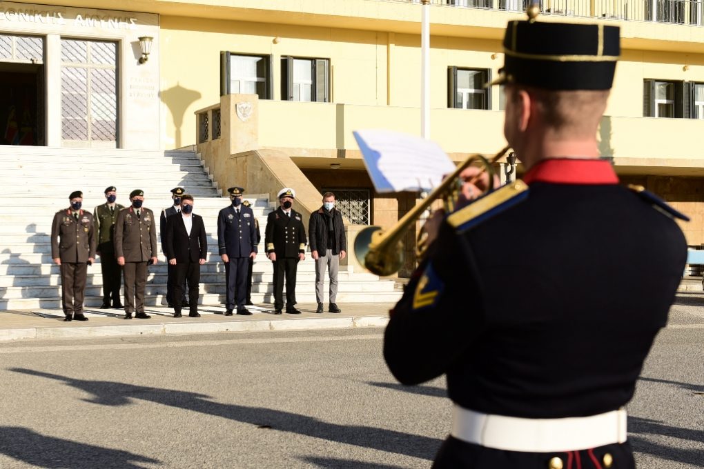 Τον Υφυπουργό συνόδευαν ο Αρχηγός ΓΕΕΘΑ Στρατηγός Κωνσταντίνος Φλώρος, ο Αρχηγός ΓΕΑ Αντιπτέραρχος (Ι) Γεώργιος Μπλιούμης, ο Αρχηγός ΓΕΣ Αντιστράτηγος Χαράλαμπος Λαλούσης, ο Αρχηγός ΓΕΝ Αντιναύαρχος Στυλιανός Πετράκης ΠN και ο Διευθυντής του Γραφείου του Υπουργού Εθνικής Άμυνας, κ. Αθανάσιος Βάλαρης.