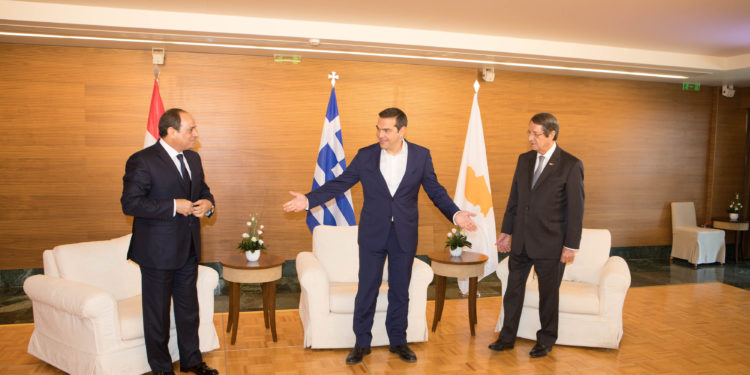 Σε εξέλιξη βρίσκονται οι τριμερείς διαβουλεύσεις των αντιπροσωπειών Ελλάδας-Κύπρου-Αιγύπτου. Στη συνέχεια θα πραγματοποιηθεί υπογραφή Συμφωνίας και Μνημονίων Συνεργασίας και θα ακολουθήσουν κοινές δηλώσεις του πρωθυπουργού, Αλέξη Τσίπρα, με τον Πρόεδρο της Κυπριακής Δημοκρατίας, Νίκο Αναστασιάδη και τον Πρόεδρο της Αραβικής Δημοκρατίας της Αιγύπτου, Αμπντέλ Φατάχ αλ Σίσι, προς τους εκπροσώπους των ΜΜΕ.