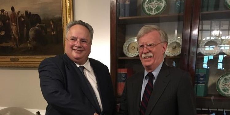 Η διεύρυνση της στρατηγικής συνεργασίας ανάμεσα στην Ελλάδα και τις Ηνωμένες Πολιτείες, μαζί με μια σειρά από θέματα κοινού γεωπολιτικού ενδιαφέροντος, τέθηκαν επί τάπητος στη συνάντηση που είχε ο Έλληνας υπουργός Εξωτερικών Νίκος Κοτζιάς με τον σύμβουλό Εθνικής Ασφάλειας του Ντόναλντ Τραμπ, Τζον Μπόλτον, στον Λευκό Οίκο.