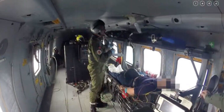 Μόλις το πλήρωμα του πλοίου ενημέρωσε ότι ο Έλληνας καπετάνιος χρειαζόταν επειγόντως ιατρική βοήθεια, ελικόπτερο της πορτογαλικής Πολεμικής Αεροπορίας απογειώθηκε από την αεροπορική βάση Lajes.