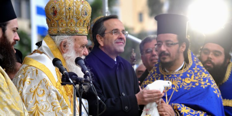 Ο Αγιασμός των υδάτων έγινε στον Πειραιά, το κεντρικό λιμάνι της χώρας παρουσία του πρωθυπουργού ο οποίος άφησε με τα χέρια του ένα λευκό περιστέρι να πετάξει στον ουρανό. Ο κ.Σαμαράς θέλησε με τις δηλώσεις του να δώσει ένα μήνυμα ελπίδας την οποία όλοι αναζητούμε ,αλλά είναι βέβαιο ότι μόνο με τις δηλώσεις δεν θα τη βρούμε.