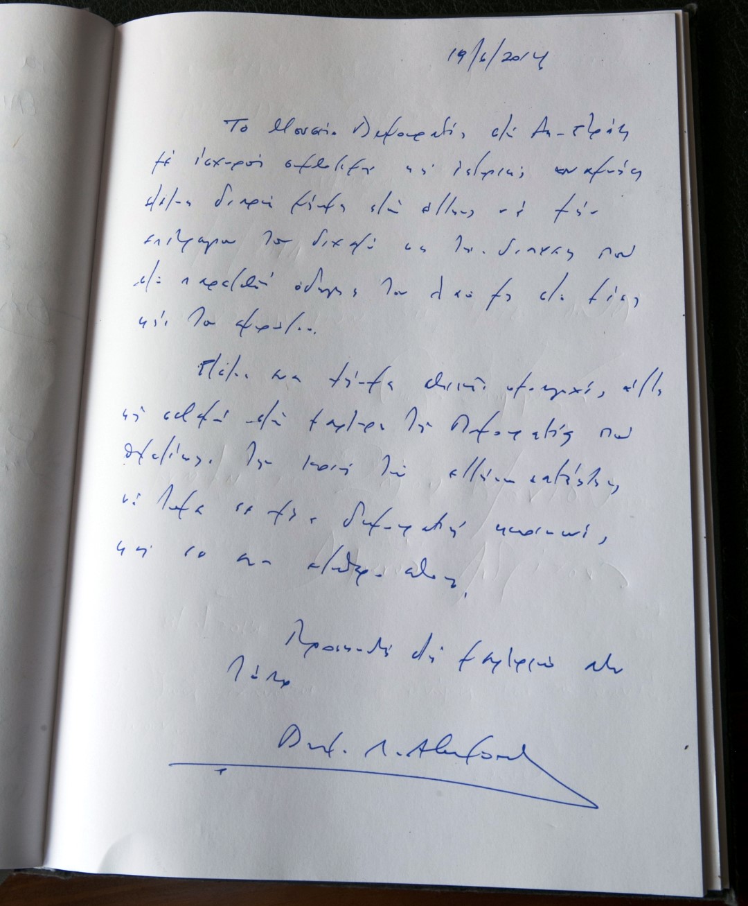 Ο ΥΕΘΑ έγραψε στο βιβλίο επισκεπτών: