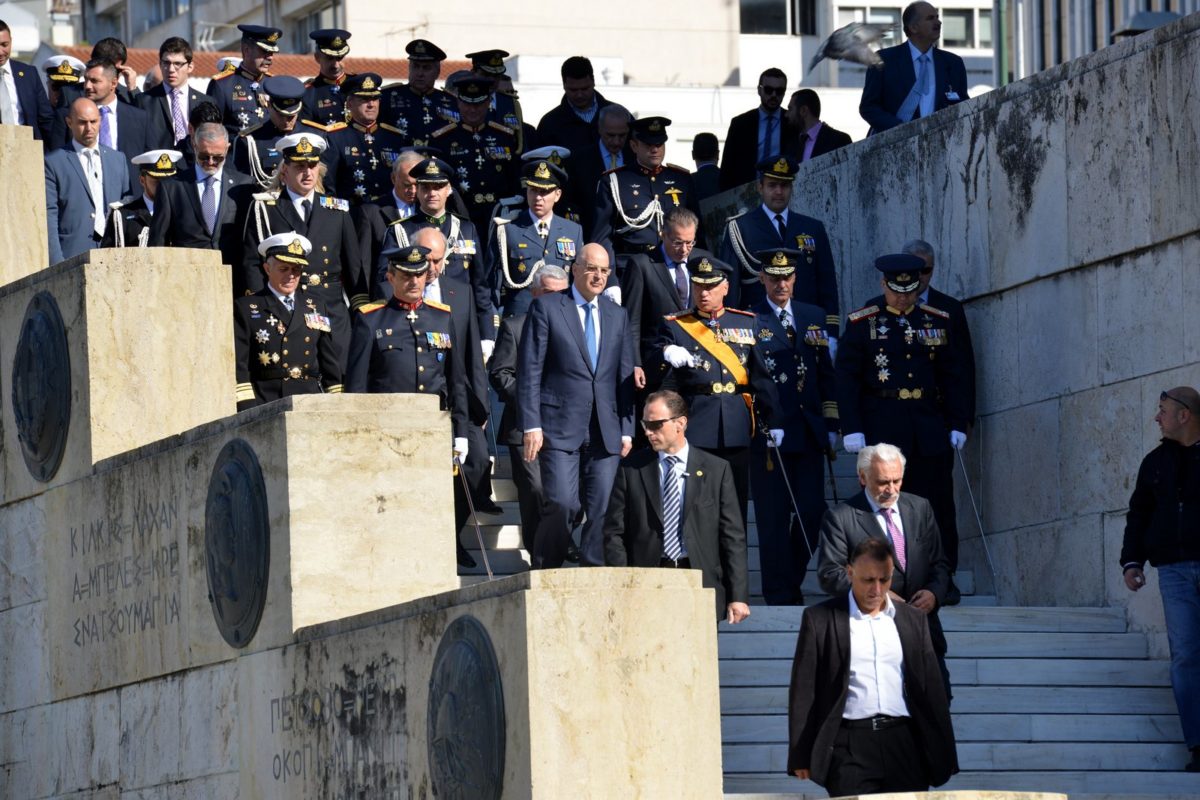 “Θεωρώ ότι το αυτονόητο για έναν Υπουργό Εθνικής Άμυνας ανά την υφήλιο είναι να κρατά και το κλαδί ελιάς και το ξίφος, με την προσδοκία ότι θα χρησιμοποιήσει μόνο το πρώτο, αλλά χωρίς ποτέ να παραιτηθεί της χρήσης του δεύτερου για την προστασία των κυριαρχικών δικαιωμάτων της χώρας”, είπε ο κ.Δένδιας και αναφερόμενος στην πρόκληση με τον πλου τουρκικού πλοίου το πρώτο 24ωρο της υπουργίας του είπε: