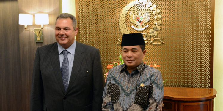 Ο Υπουργός Εθνικής Άμυνας Πάνος Καμμένος, στο πλαίσιο της επίσημης επίσκεψης που πραγματοποιεί στην Ινδονησία, συναντήθηκε με τον Αντιπρόεδρο της Ινδονησίας Muhammad Jusuf Kalla, τον Πρόεδρο της Βουλής Ade Komarudin, την Πρόεδρο της Επιτροπής Διακοινοβουλευτικών Σχέσεων Nurhayati Ali Assegaf και μέλη της Επιτροπής Εξωτερικών και Άμυνας της Βουλής της Ινδονησίας.