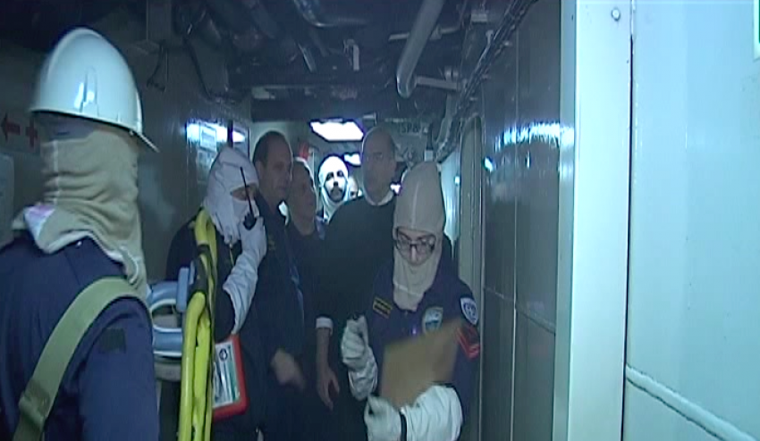 Γυμνάσιο για κατάσβεση φωτιάς στην φρεγάτα διέταξε ο κυβερνήτης του ΝΑΒΑΡΙΝΟ,παρουσία του Δένδια. Το πλήρωμα ανταποκρίθηκε εξαιρετικά .