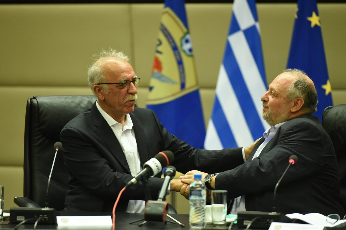 Μ΄ ένα μεγάλο ευχαριστώ στους “εργαζόμενους στρατιωτικούς” αποχώρησε από το ΥΠΕΘΑ ο Κώστας Ήσυχος. Απευθυνόμενος στον διάδοχό του Δημήτρη Βίτσα ο κ.Ήσυχος είπε: