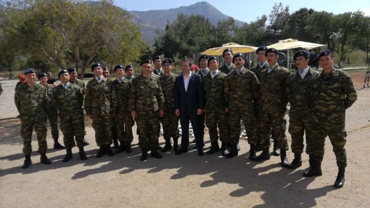 Νωρίτερα ο πρωθυπουργός ολοκλήρωσε την επίσκεψή του στο στρατόπεδο της Διοίκησης Άμυνας Νήσου Τήλου.