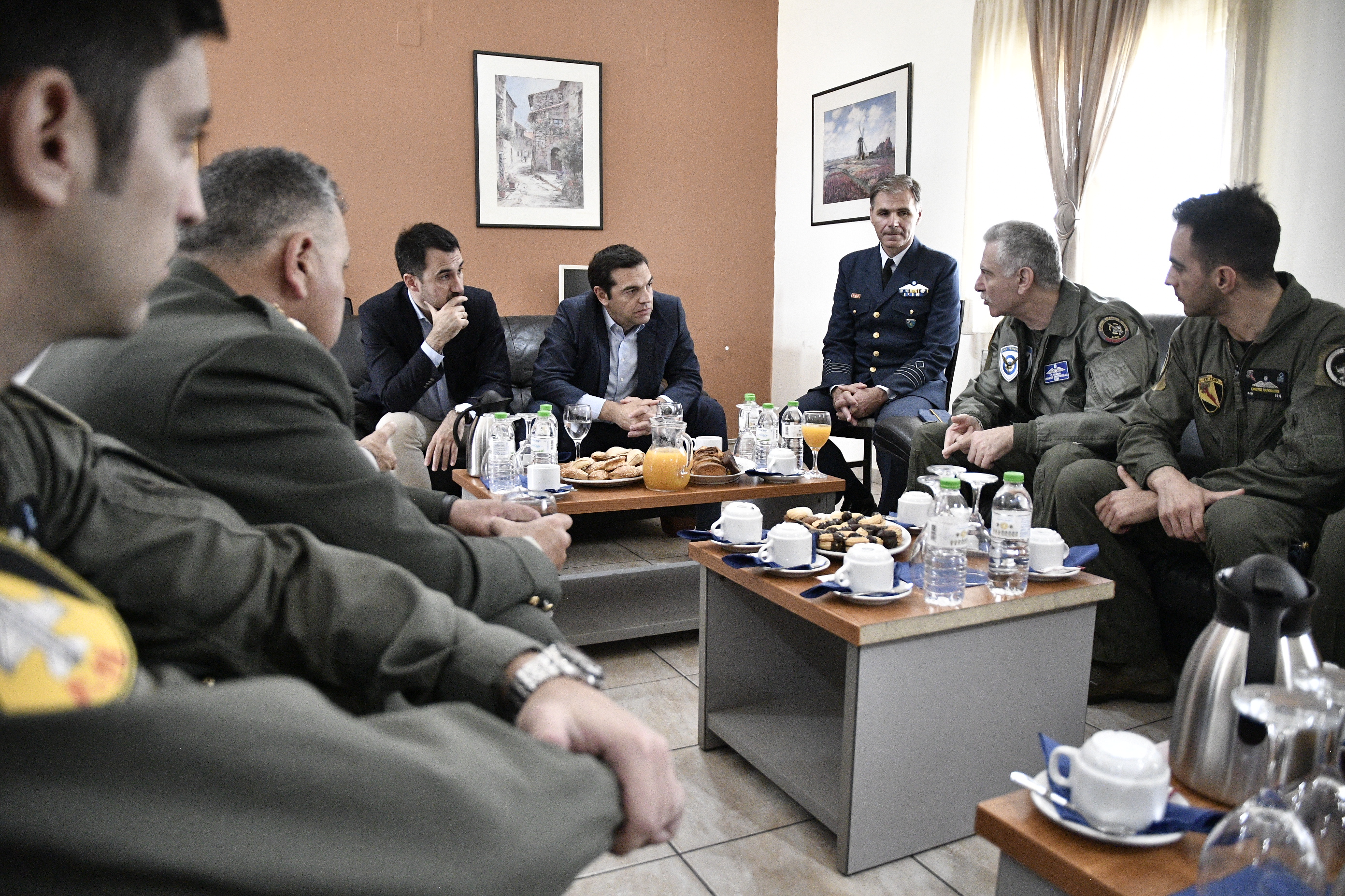 Ο πρωθυπουργός εξήρε το έργο και τον ρόλο των ανδρών και των γυναικών της Πολεμικής Αεροπορίας, πιλότων και μηχανικών, σημειώνοντας ότι βρισκονται στην πρώτη γραμμή ανά πάσα στιγμή 24 ώρες το 24ωρο και εξέφρασε τη βαθιά ευγνωμοσύνη της πατρίδας μας απέναντί τους.