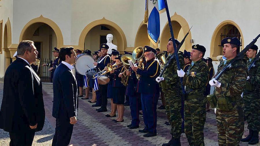 Ο Αλέξης Τσίπρας συνοδεύεται στην επίσκεψή του από τον υπουργό Εθνικής Άμυνας, Πάνο Καμμένο. Επίσης από τον υπουργό Ναυτιλίας και Νησιωτικής Πολιτικής, Παναγιώτη Κουρουμπλ. Αλλά και τον υφυπουργό Νεκτάριο Σαντορινιό.