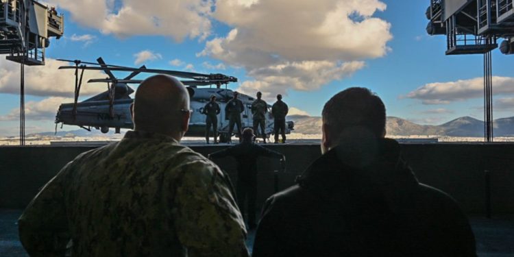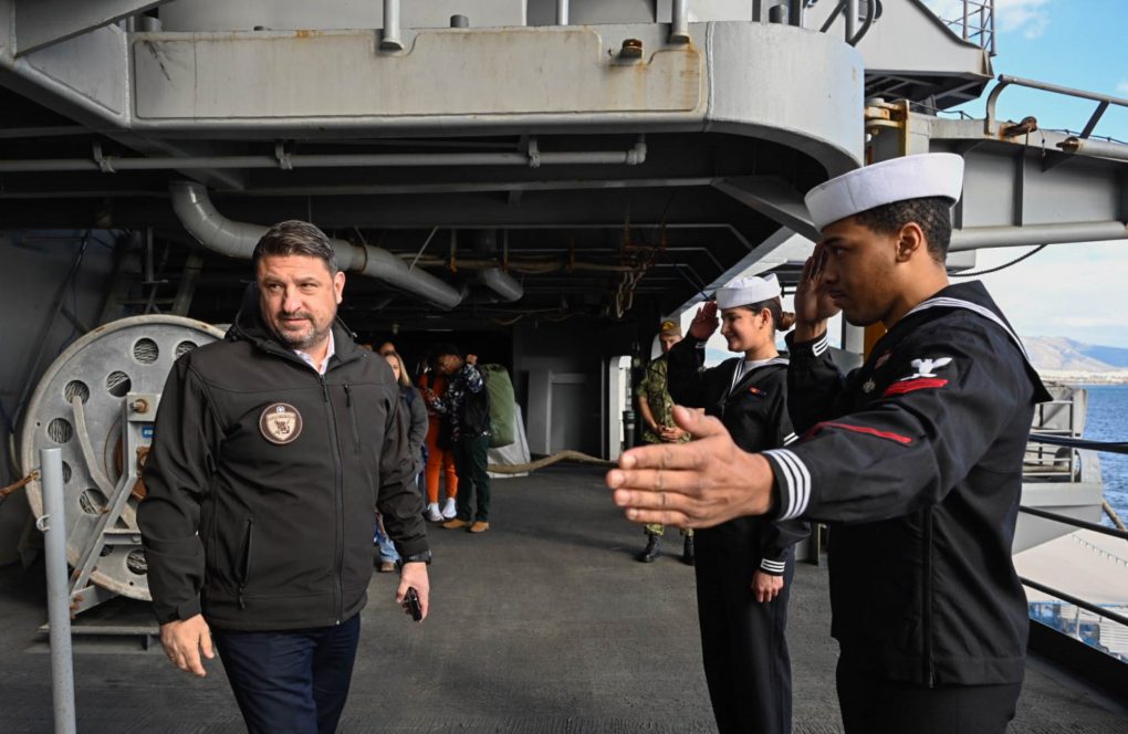 Ο Υφυπουργός Εθνικής Άμυνας κ. Νικόλαος Χαρδαλιάς, επισκέφθηκε χθες, Παρασκευή 3 Φεβρουαρίου 2023, το πυρηνοκίνητο Αεροπλανοφόρο του Αμερικανικού Ναυτικού USS George H.W. Bush (CVN 77), το οποίο ναυλοχούσε στο αγκυροβόλιο ανοικτά του Φαληρικού όρμου, στο πλαίσιο Ξενάγησης Διακεκριμένων Επισκεπτών.