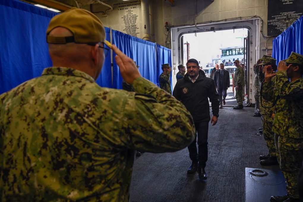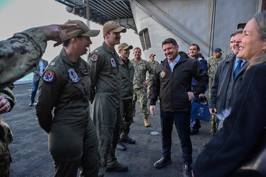 Επίσης, ο κ. Χαρδαλιάς ξεναγήθηκε στα βασικά διαμερίσματα του αεροπλανοφόρου και συνομίλησε με μέλη του πληρώματός του.