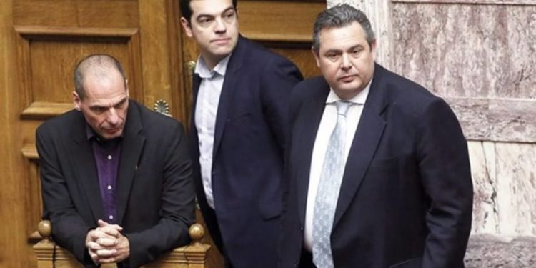 Ο κ. Βαρουφάκης απέδωσε τη συνεργασία με τον Πάνο Καμμένο στην «άγρια ομορφιά της πολιτικής» λέγοντας ότι τον έπεισε ο Τσίπρας. «Ο Καμμένος τήρησε τη συμφωνία, ότι εφόσον έπαιρνε το ΥΠΕΘΑ, δε θα μιλούσε, δε θα έβγαζε ‘’κιχ’’, και θα τηρούσε τη διαπραγματευτική γραμμή μας… Σε αυτό ο Τσίπρας είχε δίκιο…» σχολίασε. Όπως αποσαφήνισε, ο κ. Τσίπρας του εξήγησε ότι ο κ. Καμμένος «Ήταν ένας εταίρος που θα δεχόταν το ΥΠΕΘΑ, ένα άλλα δύο υφυπουργεία και δε θα παρενέβαινε στη διαπραγματευτική διαδικασία».