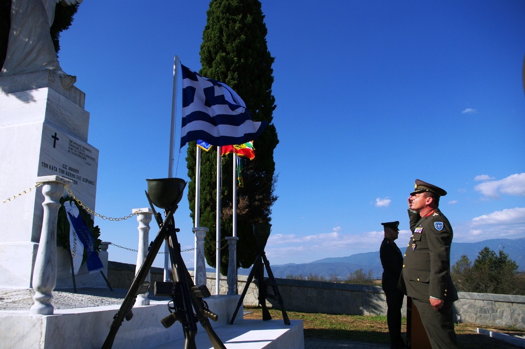 Στο τέλος της εκδήλωσης στα Ελληνικά Στρατιωτικά Κοιμητήρια ο αντιστράτηγος κ. Λεοντάρης μίλησε στους συγκεντρωμένους και εξήγησε γιατι αποχώρησε ο Ελληνικός Στρατός από το Βρετανικό Μνημείο: «Η αναγραφή στη στήλη είναι αντίθετη με την ιστορία μας και τις θέσεις της ελληνικής πολιτείας. Δεν έχουμε κανένα λόγο εναντίον κανενός νεκρού και τους τιμούμε απανταχού γης και ανεξαρτήτως εθνικότητος. Οι σημερινοί απόγονοι όμως των νεκρών αυτών δε φαίνεται να σέβονται όπως σέβονται οι άλλοι… Ενώ αναφέρονταν με ονομασίες κρατών, όταν έπρεπε να αναφερθούν στους Ελληνες χρησιμοποίησαν άλλη λέξη (σ.σ.: «μακεδόνες») που εμείς δεν την αποδεχόμαστε. Αυτός ο τόπος κατοικείται από Ελληνες», τόνισε ο αντιστράτηγος καταχειροκροτούμενος από τους συγκεντρωμένους.