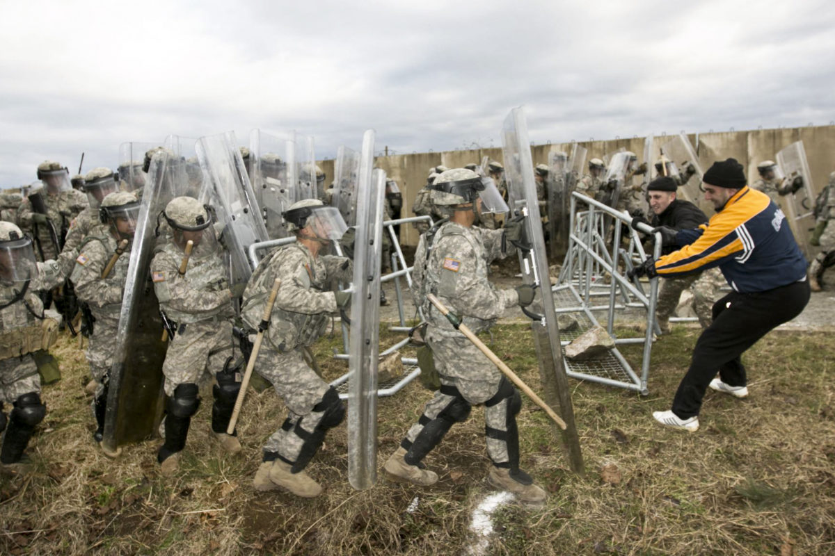 Η φωτογραφία είναι από την εκπαίδευση αμερικανικών δυνάμεων σε επιχειρήσεις καταστολής πλήθους στο Κόσσοβο.Η χρήση στρατιωτικών δυνάμεων σε τέτοιες επιχειρήσεις εκτός της περιμέτρου στρατοπέδων έχουν αρχίσει να γίνονται πολύ της …μόδας σε άλλες χώρες. Κάποιοι προσπάθησαν σχετικά πρόσφατα να τις επιβάλλουν και στην Ελλάδα. Ο νυν ΥΕΘΑ Νίκος Δένδιας είναι κατηγορηματικά αντίθετος και δεν το κρύβει.