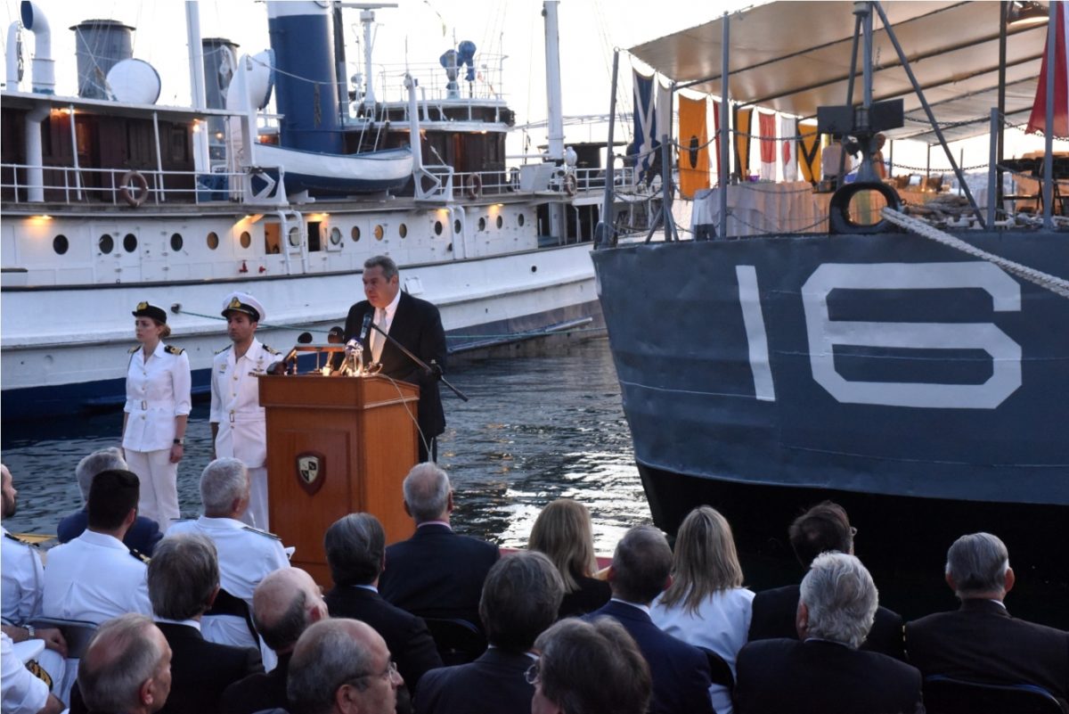 Ο Υπουργός Εθνικής Άμυνας Πάνος Καμμένος συνοδευόμενος από τον Αρχηγό ΓΕΕΘΑ Ναύαρχο Ευάγγελο Αποστολάκη, τον Αρχηγό ΓΕΝ Αντιναύαρχο Γεώργιο Γιακουμάκη, τον Αρχηγό ΓΕΣ Αντιστράτηγο Βασίλειο Τελλίδη και τον Αρχηγό ΓΕΑ Αντιπτέραρχο (Ι) Χρήστο Βαΐτση, παρέστη ως εκπρόσωπος της Κυβέρνησης στον εορτασμό της επετείου του Κινήματος του Ναυτικού του Μαΐου 1973 στο Μουσείο Αντιδικτατορικού Αγώνα «Α/Τ ΒΕΛΟΣ» στο Άλσος Ελληνικής Ναυτικής Παράδοσης στη Μαρίνα Φλοίσβου.