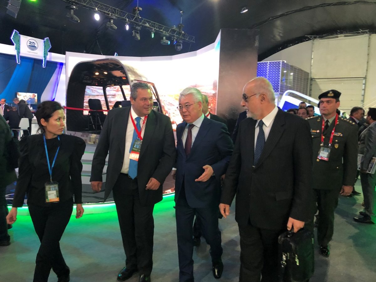 Στη συνέχεια, o Υπουργός Εθνικής Άμυνας συναντήθηκε με τον Υπουργό Άμυνας και Αεροδιαστημικής Βιομηχανίας Beibut Atamkulov, ο οποίος τον ξενάγησε στην έκθεση KADEX 2018, που πραγματοποιείται στην Αστάνα.