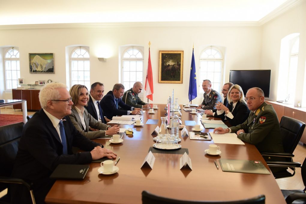 Είναι ιδιαίτερη τιμή και χαρά να επισκέπτομαι, σήμερα, τη Βιέννη και να σας συναντώ, εδώ, στο Υπουργείο Εθνικής Άμυνας. Επιτρέψτε μου δύο λόγια στη γερμανική γλώσσα μιας και βρισκόμαστε εδώ: Η Ελλάδα και η Αυστρία έχουν ισχυρή και μακρά φιλία και συνεργάζονται στενά, ως εταίροι στην Ευρωπαϊκή Ένωση. Μοιραζόμαστε κοινό όραμα, κοινές αξίες και προοπτική για τη σταθερότητα και την ευημερία της ευρύτερης περιοχής.