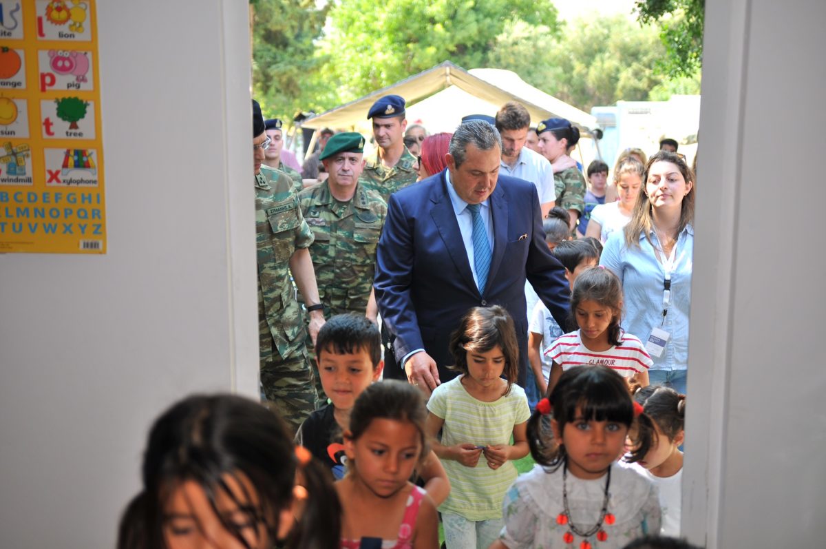 Ο Υπουργός Εθνικής Άμυνας Πάνος Καμμένος, συνοδευόμενος από τον Αρχηγό ΓΕΣ Αντιστράτηγο Αλκιβιάδη Στεφανή, εγκαινίασε σχολείο που κατασκεύασαν οι Ένοπλες Δυνάμεις στο χώρο φιλοξενίας μεταναστών στην Τήλο. Η Δήμαρχος Τήλου Μαρία Καμμά – Αλειφέρη και το Δημοτικό Συμβούλιο ανακήρυξαν τον Υπουργό Εθνικής Άμυνας επίτιμο δημότη του νησιού ενώ σε χαιρετισμό που απηύθυνε ο υπουργός Υπουργός Εθνικής Άμυνας είπε μεταξύ άλλων τα εξής: