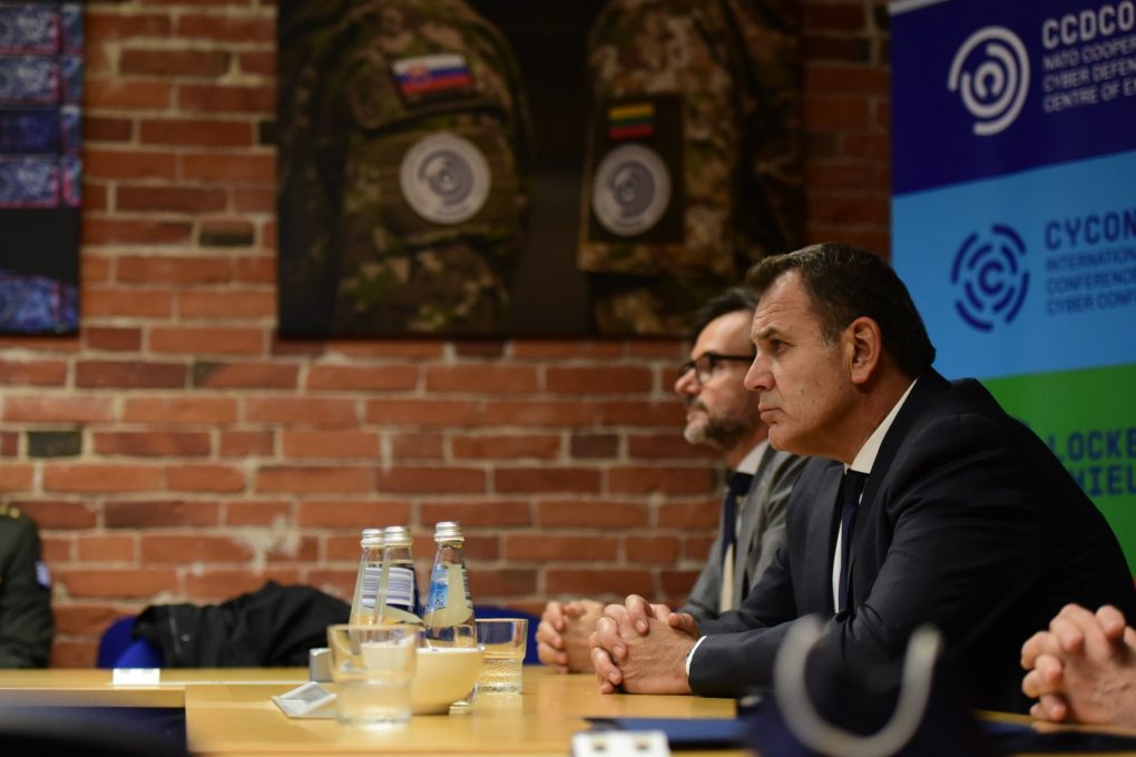 Ακολούθως, ο Υπουργός Εθνικής Αμύνης μετέβη στην Πλατεία Ελευθερίας του Ταλίν, όπου κατέθεσε στεφάνι στο Μνημείο Ανεξαρτησίας και πραγματοποίησε επίσκεψη στο Κέντρο Αριστείας CCDCOE του NATO(NATO Cooperative Cyber Defence Centre of Excellence). Το CCDCOE λειτουργεί στην Εσθονία από τον Μάιο του 2008 με αντικειμενικό σκοπό την ανάπτυξη ικανοτήτων, συνεργασίας και ανταλλαγής πληροφοριών μεταξύ των Κρατών – Μελών της Συμμαχίας και των εταίρων της σε θέματα Κυβερνοάμυνας (Cyber Defence).