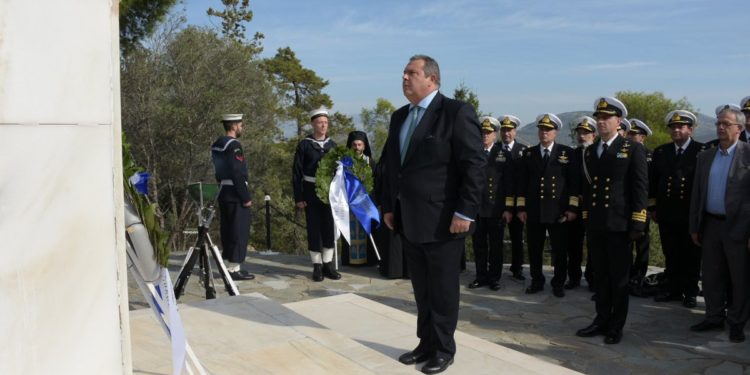 Ο ΥΕΘΑ @PanosKammenos παρέστη στο ετήσιο Μνημόσυνο για τους πεσόντες του Πολεμικού Ναυτικού pic.twitter.com/CfSDvzat8k