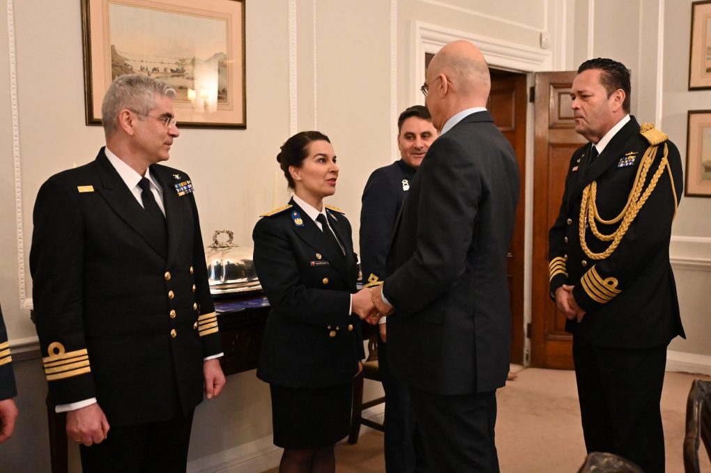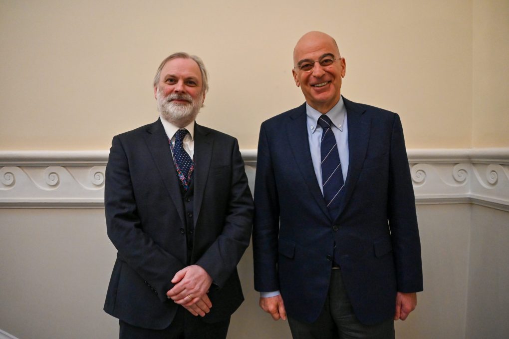 Επίσης, ο κ. Δένδιας συναντήθηκε με τον Σύμβουλο Εθνικής Ασφάλειας (NSA) του Ηνωμένου Βασιλείου, Sir Tim Barrow, κατά την οποία αντάλλαξαν απόψεις για την κατάσταση ασφαλείας στην Ουκρανία, την Ανατολική Μεσόγειο, τη Μέση Ανατολή και την Ερυθρά Θάλασσα.