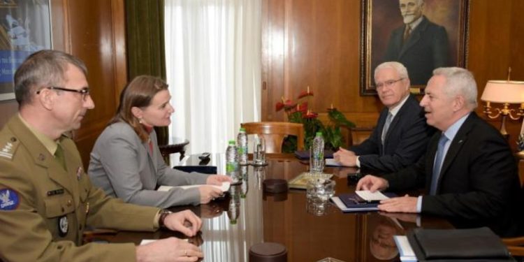 Κατά τη συνάντηση συζητήθηκαν θέματα που αφορούν στην αμυντική συνεργασία, τόσο σε διμερές επίπεδο, όσο και στο πλαίσιο Ευρωπαϊκής Ένωσης και ΝΑΤΟ, αναφέρει σχετική ανακοίνωση του υπουργείου.