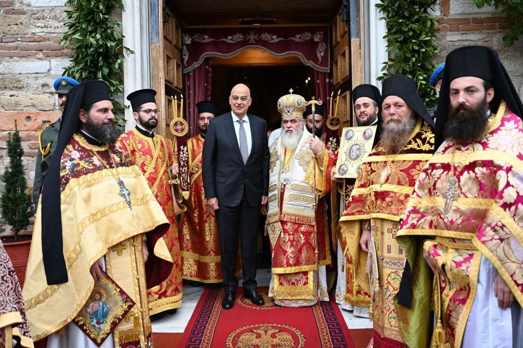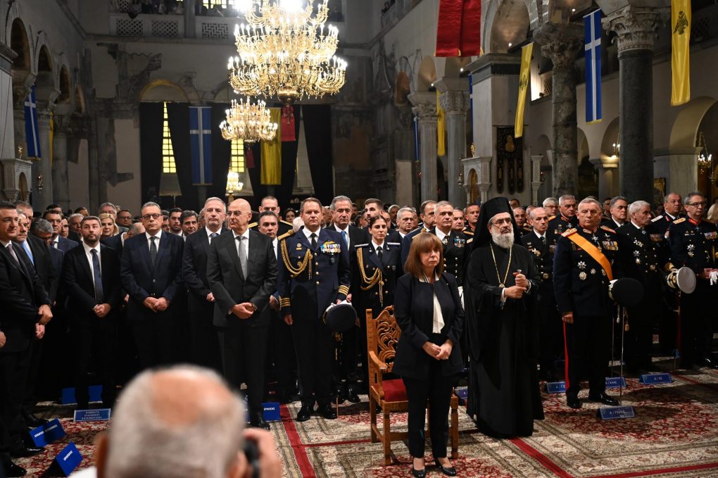 Ο κ. Δένδιας υποδέχθηκε την Πρόεδρο της Ελληνικής Δημοκρατίας, Κατερίνα Σακελλαροπούλου, στον Ιερό Ναό Πολιούχου Αγίου Δημητρίου, όπου τελέστηκε Δοξολογία, χοροστατούντος του Σεβασμιωτάτου Μητροπολίτου Νεαπόλεως και Σταυρουπόλεως κ.κ. Βαρνάβα, ως εκπροσώπου του Τοποτηρητού της Ιεράς Μητροπόλεως Θεσσαλονίκης και Μακαριωτάτου Αρχιεπισκόπου Αθηνών και πάσης Ελλάδος, κ.κ. Ιερώνυμου.