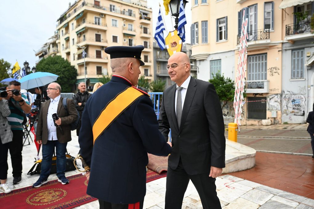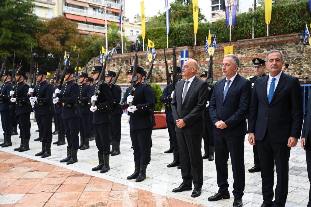 Ο Υπουργός Εθνικής Άμυνας (ΥΕΘΑ), Νίκος Δένδιας, εκπροσώπησε σήμερα, Πέμπτη 26 Οκτωβρίου 2023, τον Πρωθυπουργό Κυριάκο Μητσοτάκη και την Κυβέρνηση στις εκδηλώσεις στη Θεσσαλονίκη για την 111η Επέτειο από την Απελευθέρωση της πόλης και τον εορτασμό του Πολιούχου Αγίου Δημητρίου.