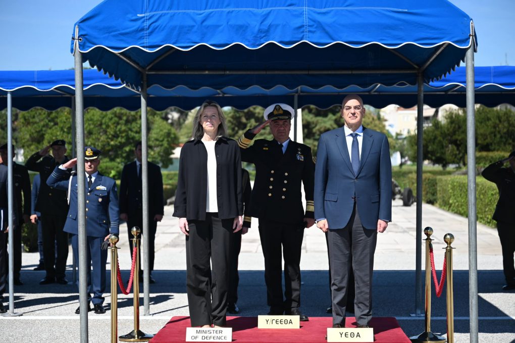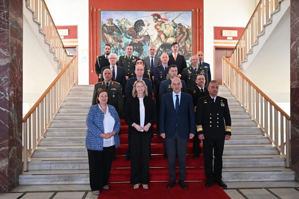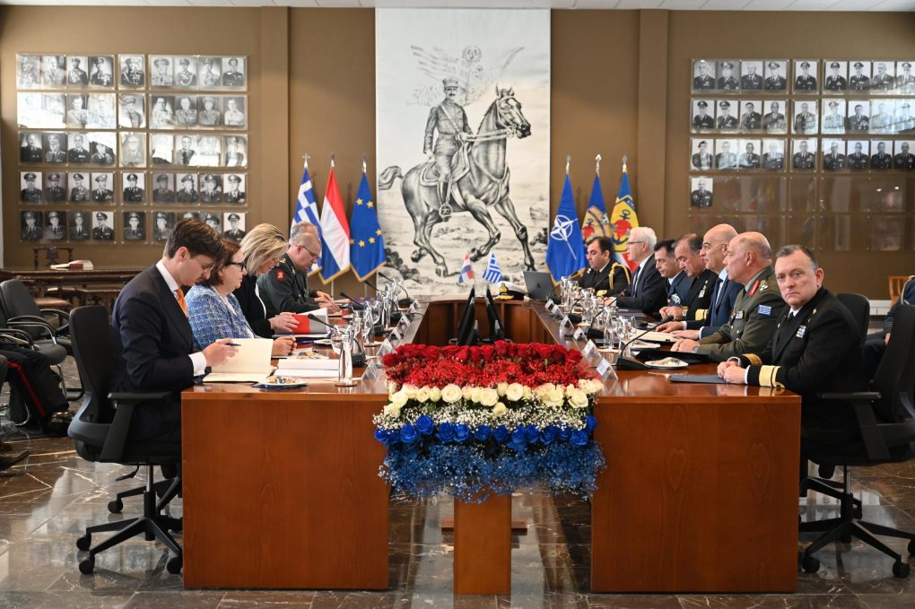 Ο Υπουργός Εθνικής Άμυνας (ΥΕΘΑ), Νίκος Δένδιας, συναντήθηκε σήμερα, Τετάρτη 10 Απριλίου 2024, στην έδρα της 1ης Στρατιάς/EU–OHQ στη Λάρισα, με την Υπουργό Άμυνας της Ολλανδίας, Kajsa Ollongren, η οποία πραγματοποίησε επίσκεψη στην Ελλάδα.