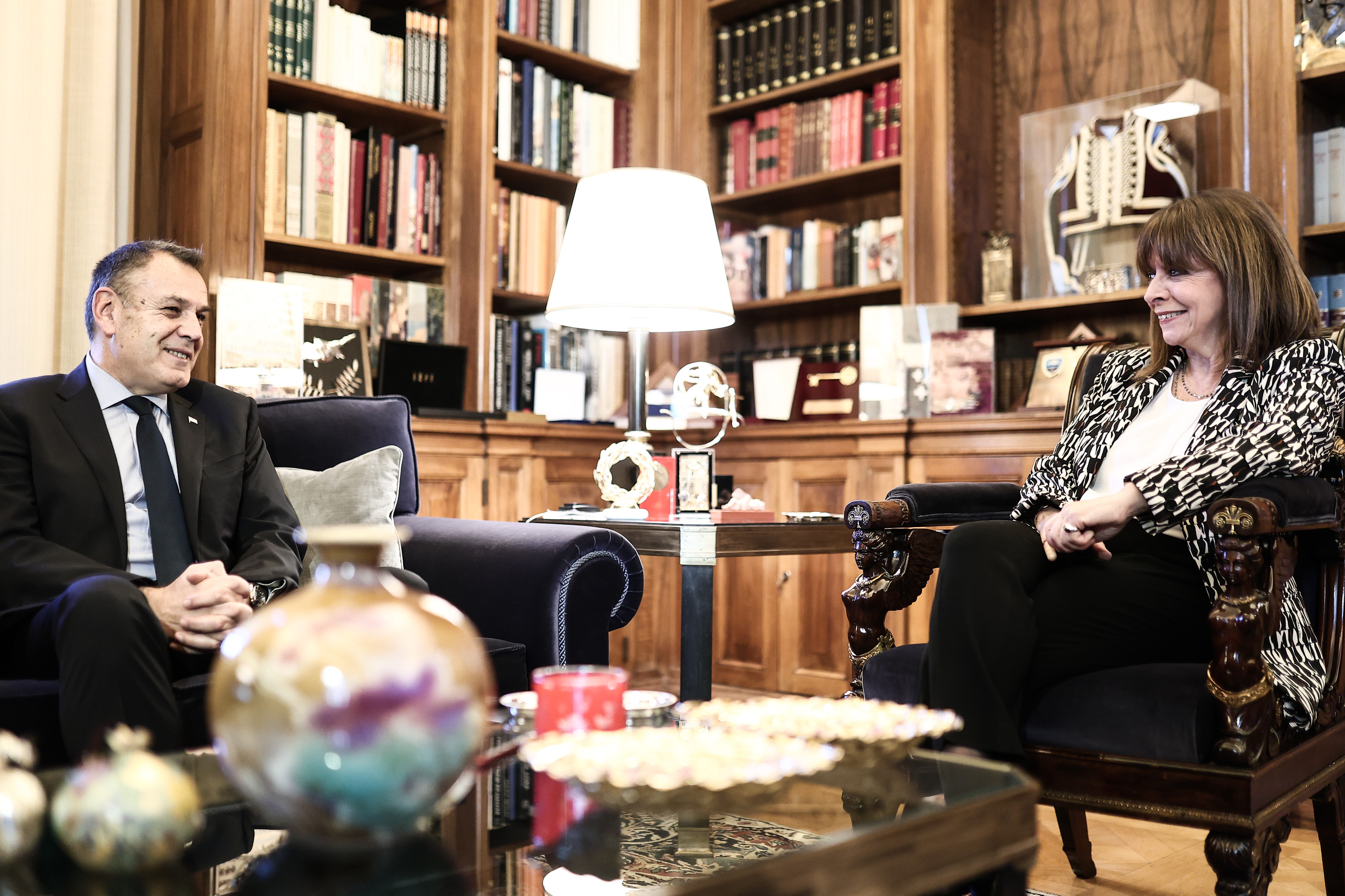 Την Πρόεδρο της Δημοκρατίας Κατερίνα Σακελλαροπούλου επισκέφθηκε σήμερα ο υπουργός Εθνικής Άμυνας (ΥΕΘΑ) Νικόλαος Παναγιωτόπουλος στο Προεδρικό Μέγαρο, προκειμένου να την ενημερώσει για θέματα της αρμοδιότητάς του.