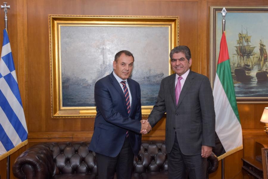 O ΥΕΘΑ κ. Νικόλαος Παναγιωτόπουλος συναντήθηκε σήμερα με τον Πρέσβη των Ηνωμένων Αραβικών Εμιράτων κ. Μοχάμεντ Μέρ Αμπντάλλα Γιουσίφ Αλραέσι (Mohamed Meer Abdalla Yousif Alraeesi), κατά την οποία συζητήθηκαν θέματα διμερούς αμυντικής και αμυντικο-τεχνικής συνεργασίας και τρόποι περαιτέρω εμβάθυνσής τους. Μίλησαν επίσης για τις προκλήσεις ασφαλείας και σταθερότητας στην ευρύτερη περιοχή.