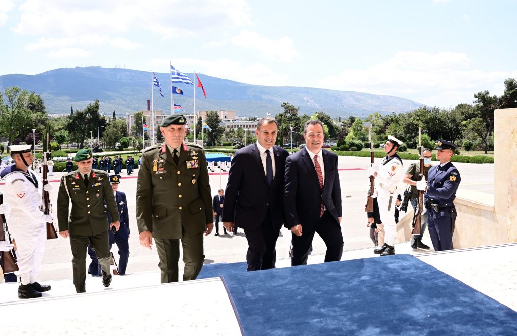Ο Υπουργός Εθνικής Αμύνης (ΥΕΘΑ), κ. Νικόλαος Παναγιωτόπουλος υποδέχθηκε σήμερα Τρίτη 7 Ιουνίου 2022 στο Στρατόπεδο «ΠΑΠΑΓΟΥ» τον Υπουργό Άμυνας της Αλβανίας κ. Νίκο Πελέσι (Niko Peleshi), στο πλαίσιο της επίσημης επισκέψεως που πραγματοποιεί στην Αθήνα.