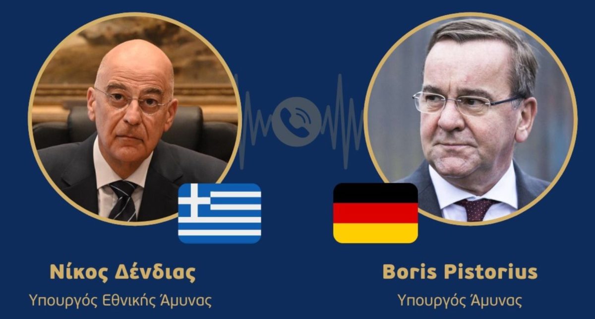 Ο Υπουργός Εθνικής Άμυνας (ΥΕΘΑ) κ.Νίκος Δένδιας είχε σήμερα, Δευτέρα 22 Απριλίου 2024, τηλεφωνική επικοινωνία με τον Γερμανό ομόλογό του, Μπόρις Πιστόριους.