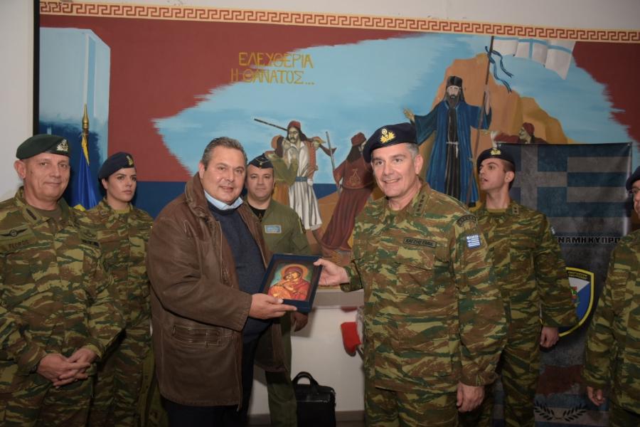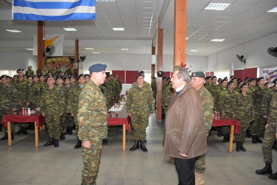 Στην Κύπρο, τα τελευταία τέσσερα χρόνια, που έχω την πολιτική ευθύνη, μαζί με την πολιτική και τη στρατιωτική ηγεσία κάναμε πολλά. Είμαστε σήμερα εδώ, με τον Υπαρχηγό ΓΕΕΘΑ, παρουσία του Διοικητού σας, του κ. Πρέσβη και του Υπαρχηγού της Εθνικής Φρουράς για να δείξουμε ότι η Κύπρος δεν είμαι μακριά.