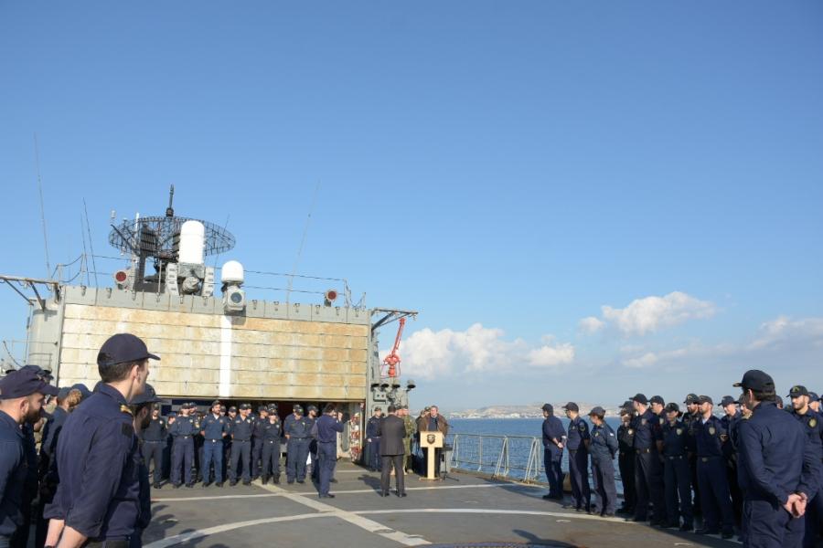 Αυτό δεν είναι απειλή προς κανέναν, δεν είναι λεονταρισμός, είναι η άσκηση της εθνικής μας κυριαρχίας, του δικαίου. Το ξεκαθαρίζουμε από την αρχή για να καταλάβουν όλοι ποια είναι τα όριά μας και να ξέρουν ότι το Έθνος είναι ενωμένο. Και το Έθνος είναι ενωμένο όσο οι Ένοπλες Δυνάμεις είναι αυτές που εσείς διαμορφώνετε κάθε μέρα με τη ζωή σας, με την παρουσία σας, με την πειθαρχία σας, με τη εκπαίδευσή σας, με την πίστη στην πατρίδα.