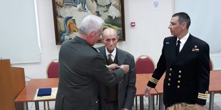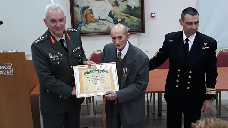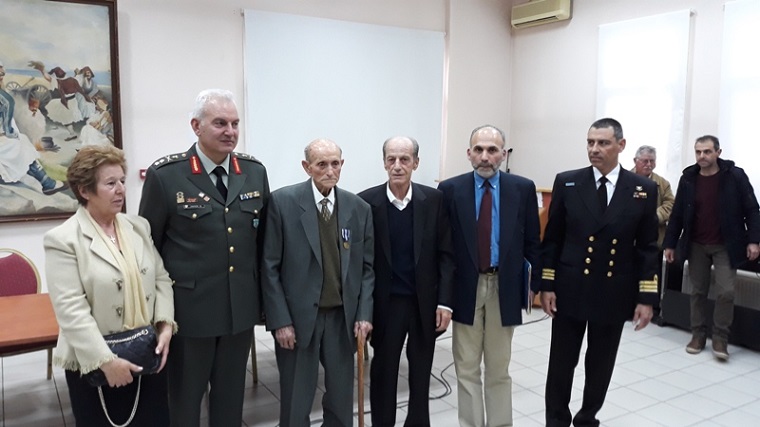Το Αναμνηστικό Μετάλλιο επέδωσε στον κ. Χαράλαμπο Κουρελή ο Υποστράτηγος Νικόλαος Λάλος, Διοικητής Διοίκησης Κέντρων Εκπαίδευσης, εκπροσωπώντας τον Υπουργό Εθνικής Άμυνας.