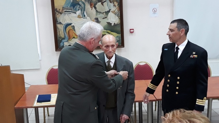 Το Αναμνηστικό Μετάλλιο επέδωσε στον κ. Χαράλαμπο Κουρελή ο Υποστράτηγος Νικόλαος Λάλος, Διοικητής Διοίκησης Κέντρων Εκπαίδευσης, εκπροσωπώντας τον Υπουργό Εθνικής Άμυνας.