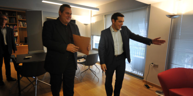 Για συνέχεια της κυβέρνησης και του κυβερνητικού έργου που είχε ξεκινήσει μίλησε ο πρόεδρος των ΑΝΕΛ Πάνος Καμμένος,αμέσως μετά από την συνάντηση που είχε με τον Αλέξη Τσίπρα, στα γραφεία του ΣΥΡΙΖΑ στη Κουμουνδούρου.